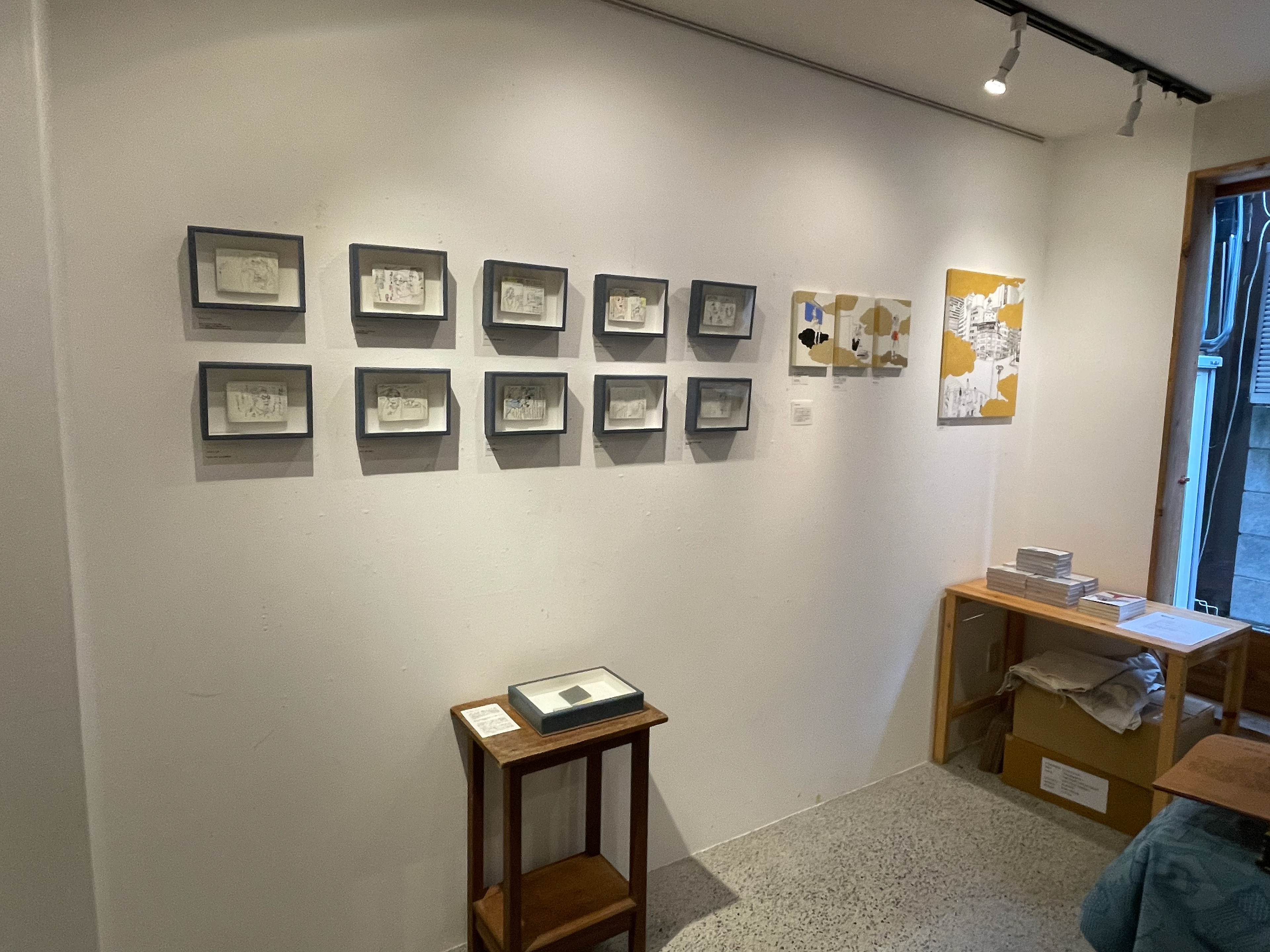 の刊行を記念し、2021 年10 月~12 月にかけて京都の誠光社を皮切りに、東京・山小屋、横浜・生活綴方の3 都市で開催した『スパイ手帳』作品展。