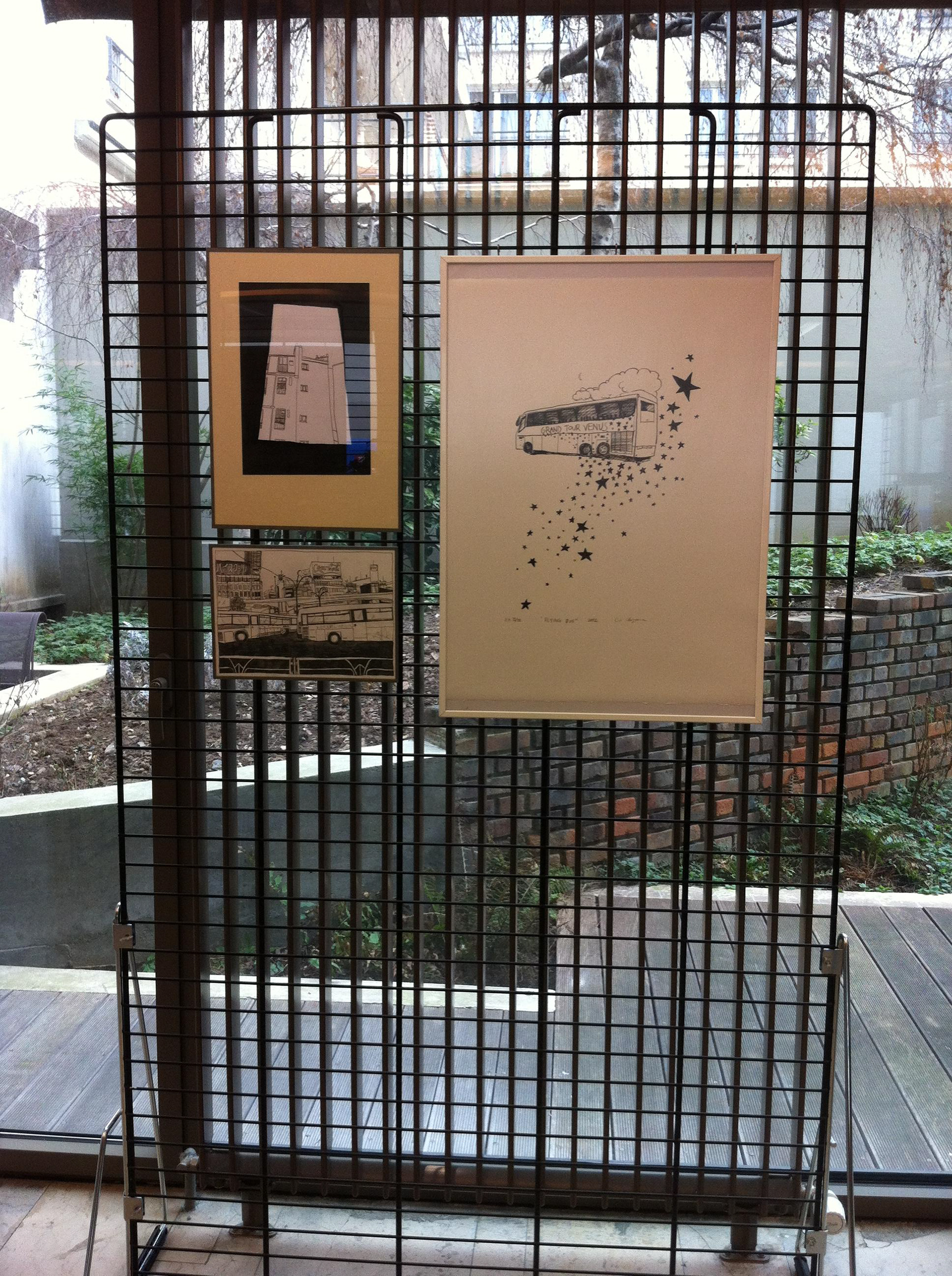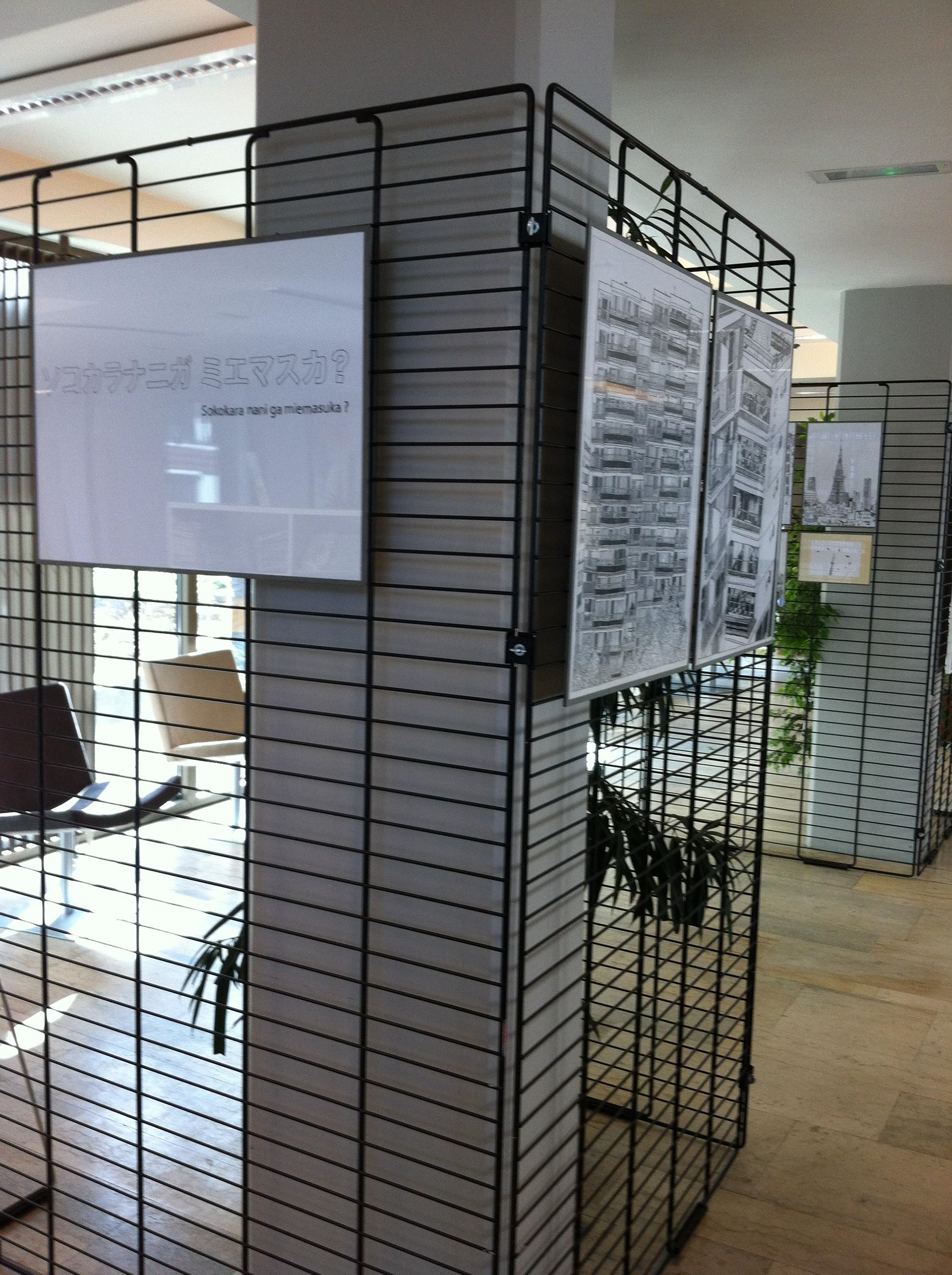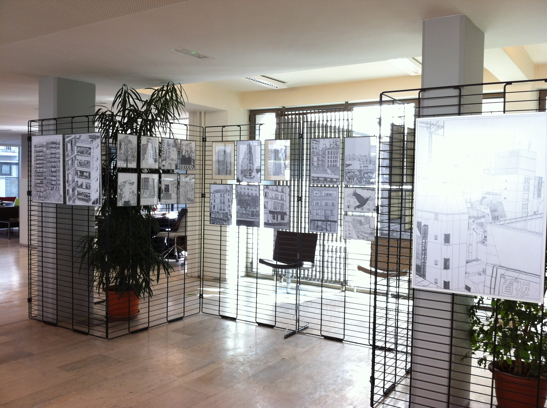 Tout d’abord une exposition de ses dessins de Paris, sa ville de résidence, et Tokyo, sa ville natale, montrant sa vision personnelle de paysages et d’instants de tous les jours.