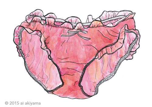 Panties are usually hidden. It is important to note that panties are much more personal than other items used in daily life, even other kinds of underwear such as brassieres. Given this, one might expect resistance from potential contributors when they are approached for panty-related data collection, but, interestingly, in the surveys carried out up until this point, I have found that people willingly (and even amusedly) cooperate, regardless of nationality, occupation, or age. (Contributors so far have included journalists, authors, lawyers, doctors, curators, artists and musicians, and people from France, the USA, Italy, Iran, and Japan, among others.)